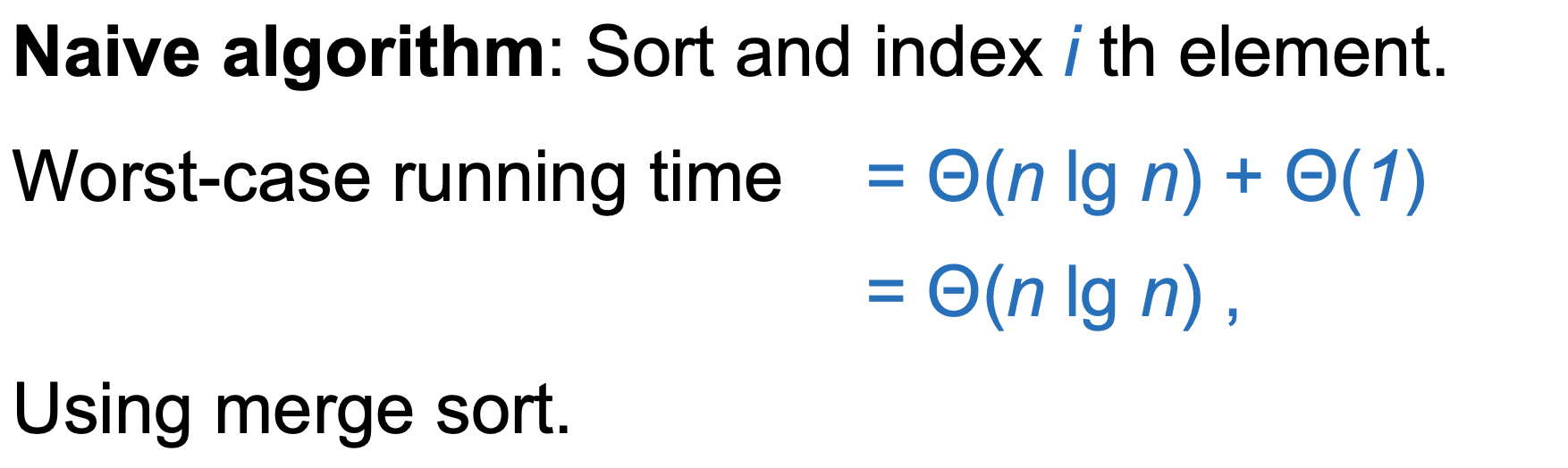 정렬을 하면 모든 순서 통계량을 에 구할 수 있지만, 특정 하나의 순서 통계량만 필요하다면 정렬 없이도 더 빠르게 구할 수 있다. 이 글에서는 그 방법을 살펴본다.