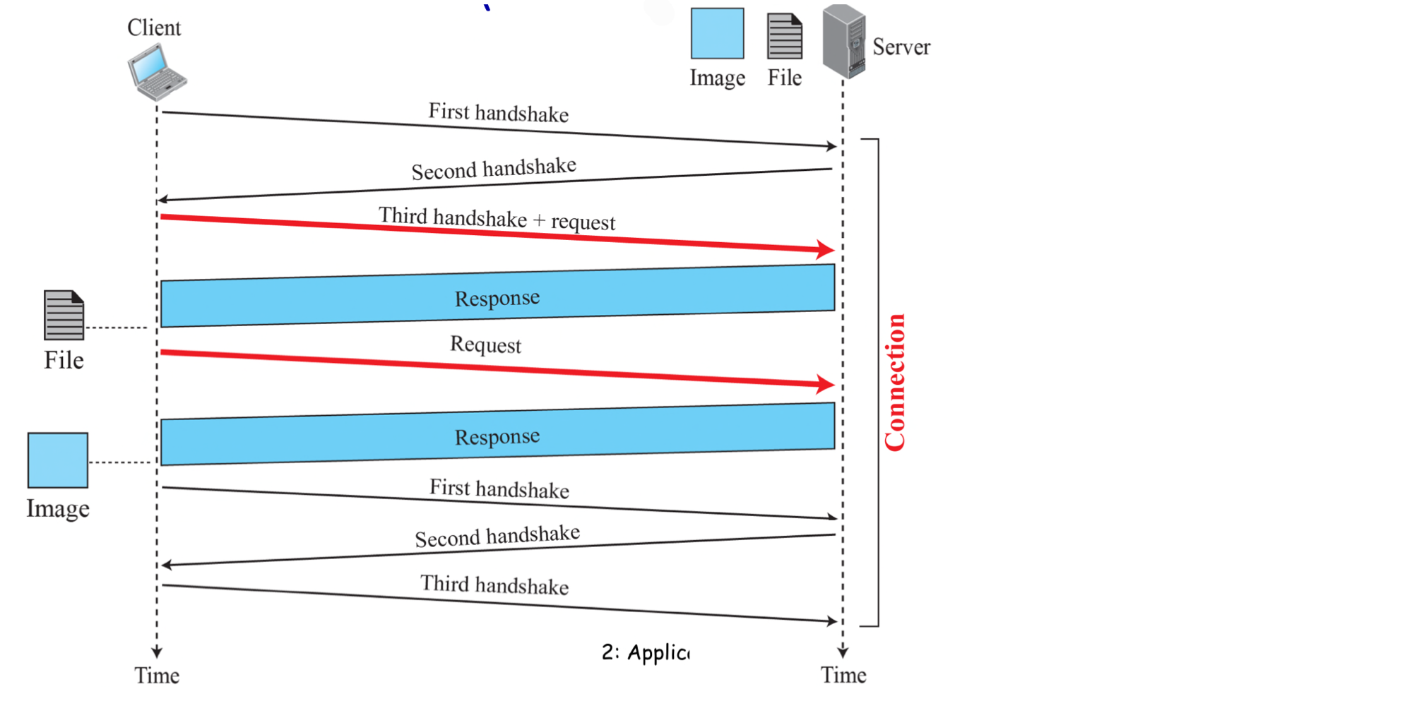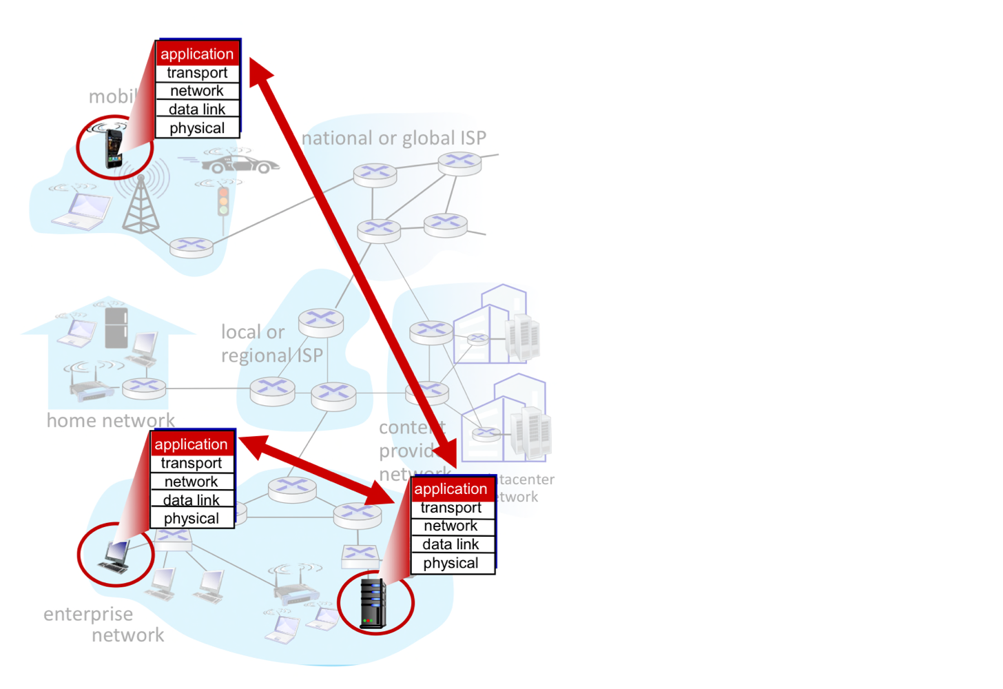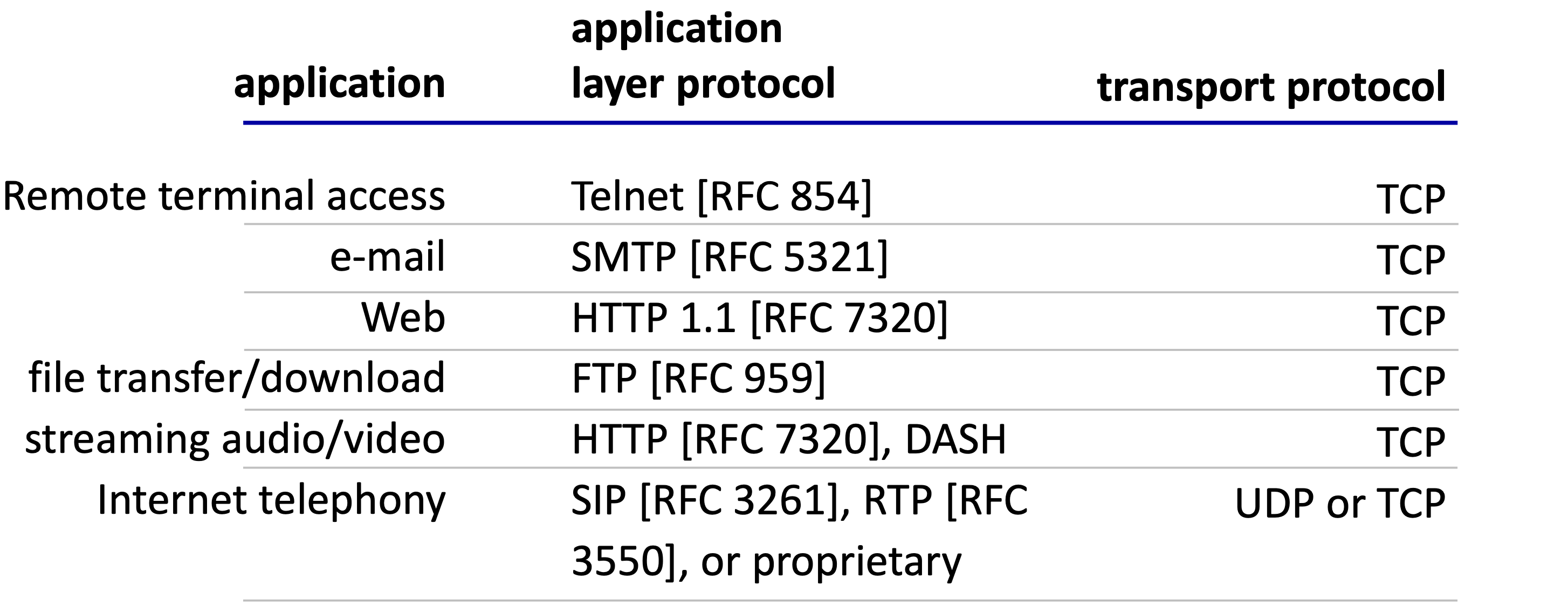 애플리케이션 계층 프로토콜은 네트워크 애플리케이션의 한 요소일 뿐이다. 예를 들어, 웹 애플리케이션은 문서 포맷 표준(HTML), 웹 브라우저, 웹 서버, 그리고 HTTP를 포함하는 여러 요소로 구성된다.