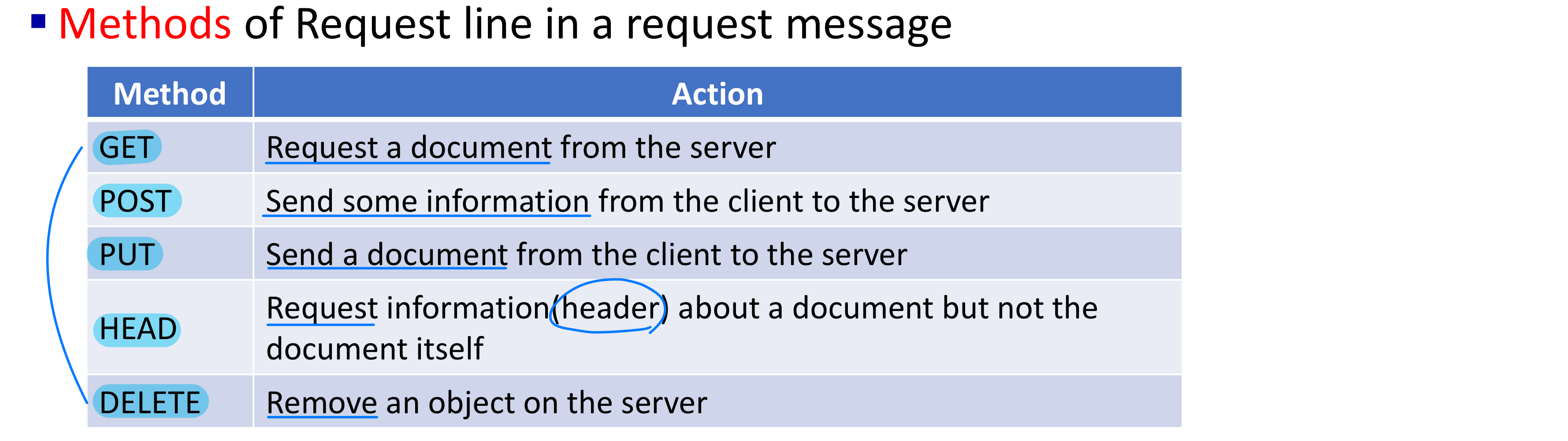 - 교환되는 메시지의 유형: request, response 등