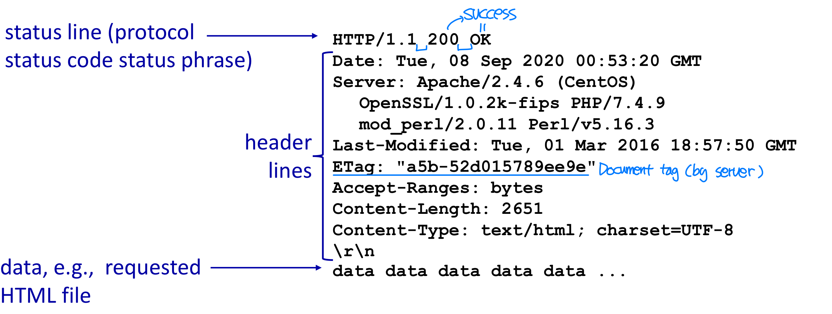 - Server: 웹 서버가 HTTP를 사용하여 요청에 대한 응답으로 객체를 전송한다.