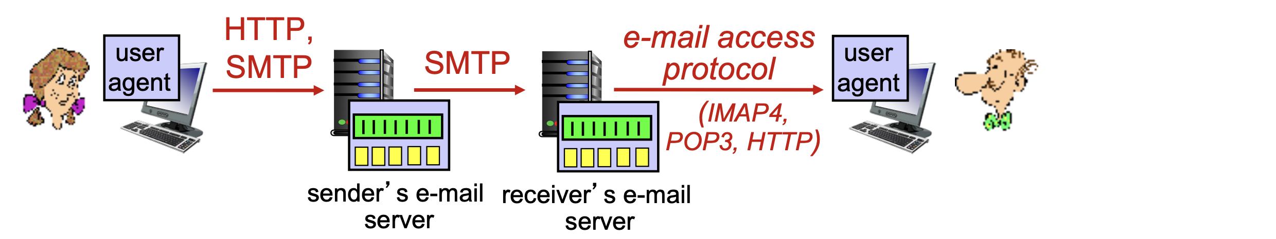 예를 들어, gaia.cs.umass.edu 웹 서버에 HTTP 메시지를 보내려면 IP address: 128.119.245.12, port number: 80을 지정한다.