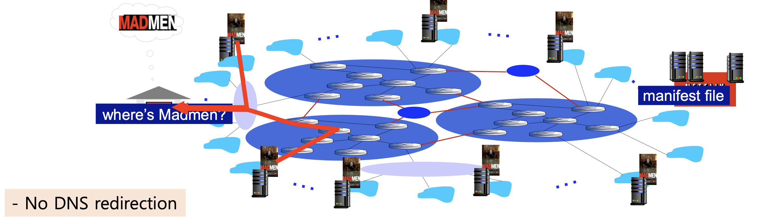 - Amazon 클라우드의 넷플릭스 소프트웨어가 영화 사본을 가진 CDN 서버를 결정한다.