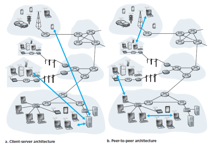 여기서 네트워크 구조와 애플리케이션 구조는 구별해야 한다. 네트워크 구조는 개발자 관점에서 고정되어 있고, 특정 서비스 집합을 제공한다. 반면 애플리케이션 구조는 개발자가 설계하며, 여러 종단 시스템에서 어떻게 조직되어야 하는지를 결정한다.