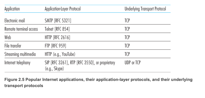 - Reliable data transfer (신뢰적 데이터 전송): 파일 전송이나 웹 트랜잭션처럼 100% 신뢰성이 필요한 앱이 있고, 오디오처럼 일부 손실을 허용하는 손실 허용 애플리케이션도 있다.