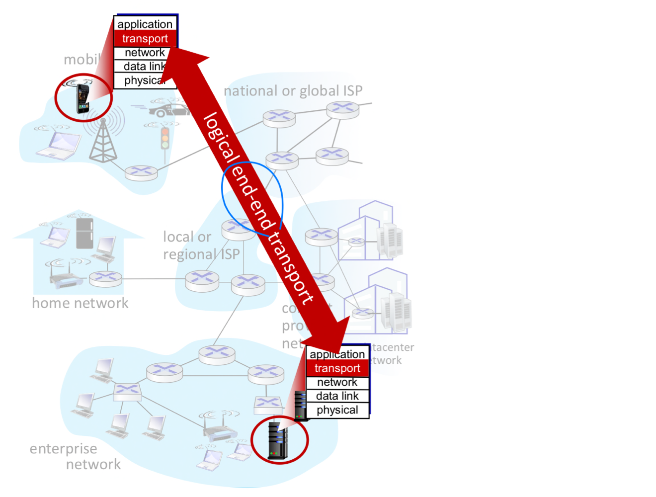 전송 계층은 서로 다른 호스트에서 실행 중인 **애플리케이션 프로세스 간의 논리적 통신(Logical Communication)**을 제공한다.