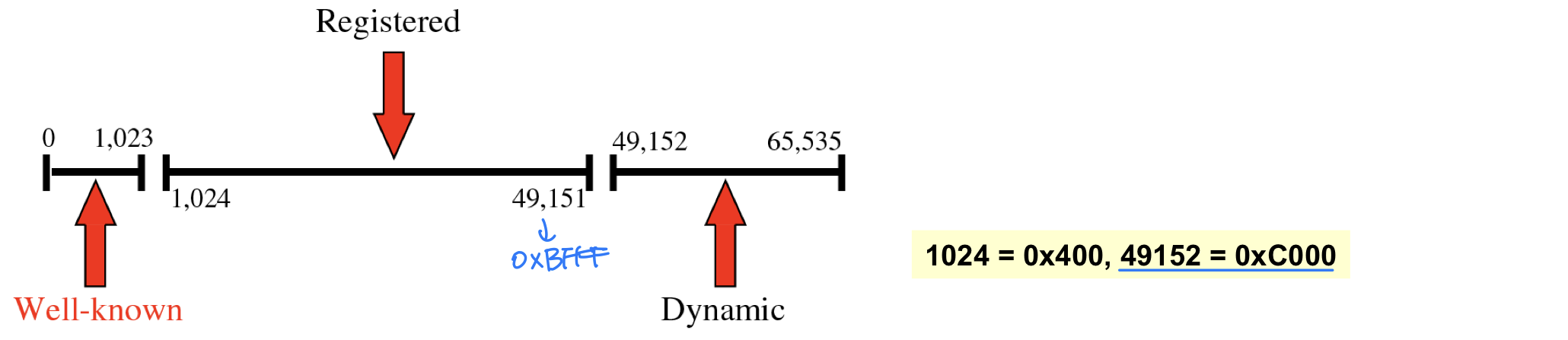 | Dynamic (Private) ports | 49,152 ~ 65,535 () | 통제도 등록도 되지 않으며, 어떤 프로세스든 사용 가능. 임시 포트로도 활용. 충돌 가능성 있음 |