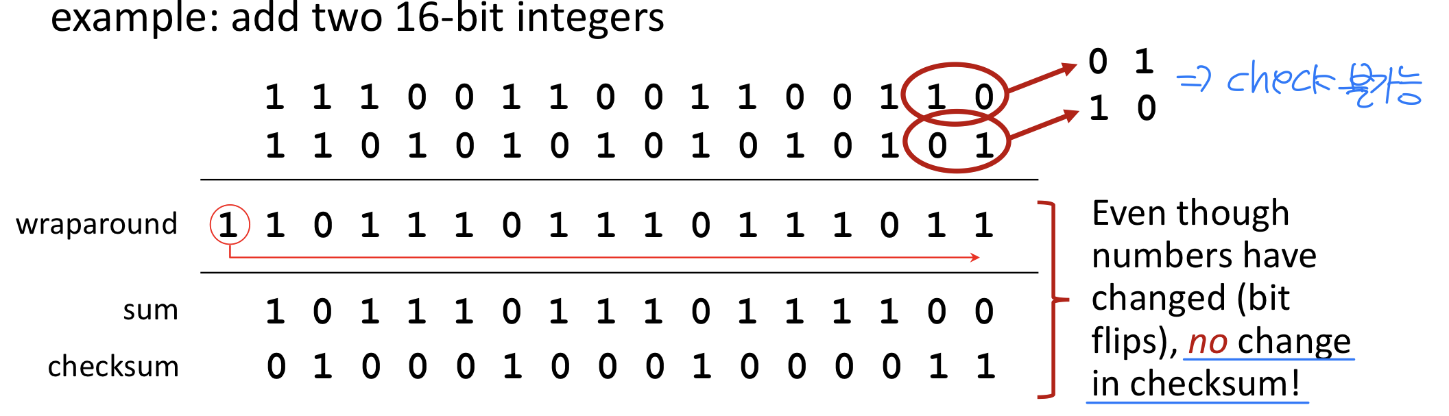 - **체크섬(Checksum)**에 의한 오류 검출을 제외하면 오류 복구 메커니즘이 없다.