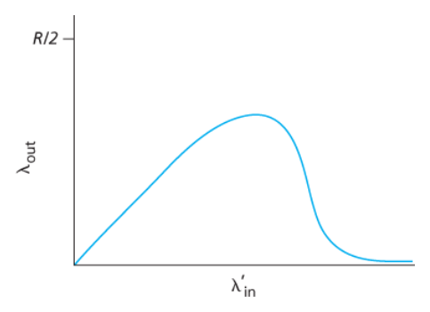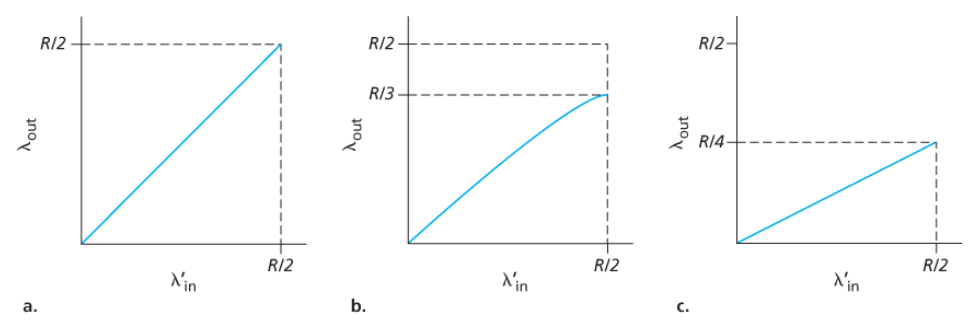 실제 처리율은 원점에서부터 발산하면서 45º 각도의 화살표(동등한 대역폭 공유)를 따라야 한다. - 이상적으로는 두 처리율의 합이 R과 같아야 한다.