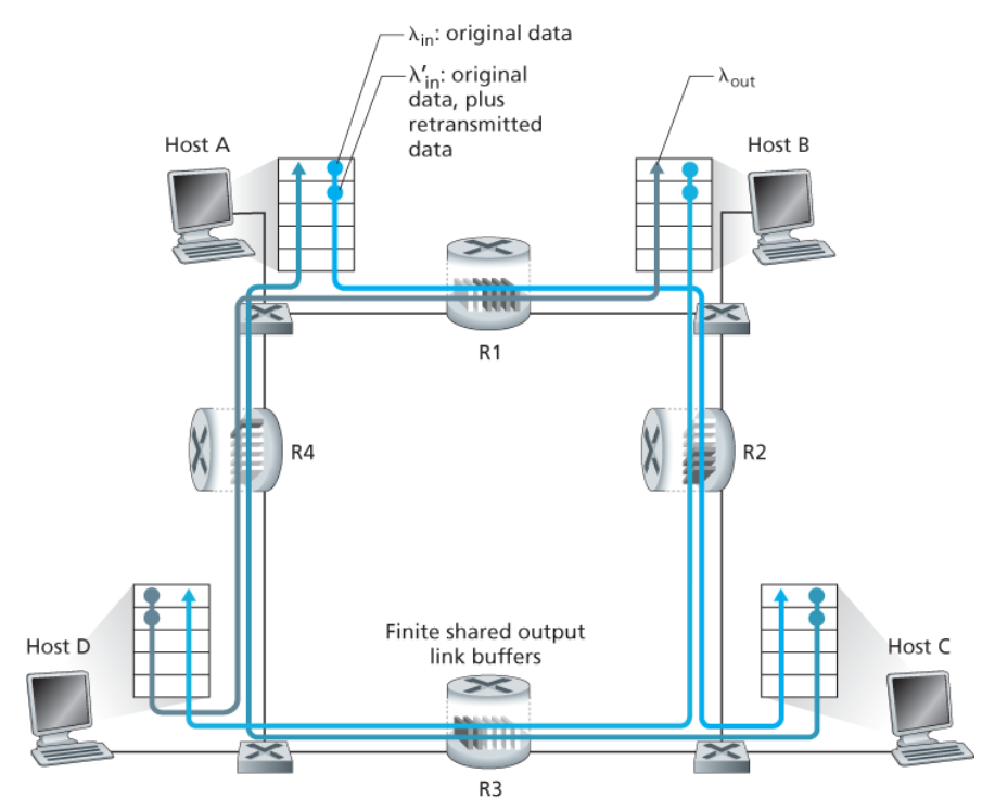 2️⃣ 결국 두 연결에 의해 공동으로 소비되는 링크 대역폭은 R보다 커질 것이다. → 패킷 손실이 발생