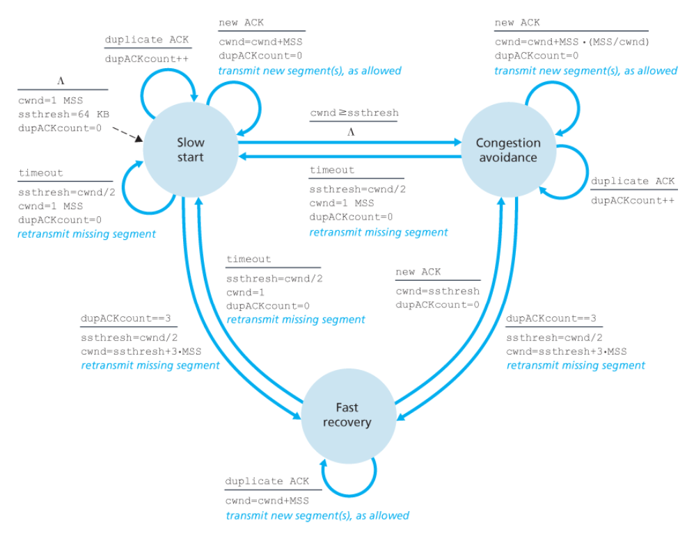→ 그들이 같은 혼잡 윈도우 크기를 갖는다면 같은 처리율을 가질 것이다. - 송신할 많은 양의 데이터가 있다.