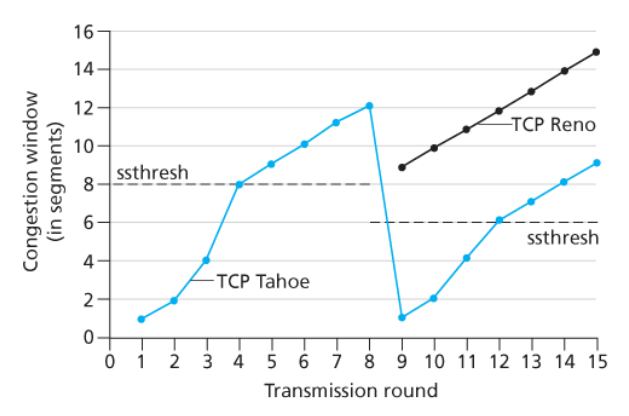 TCP 혼잡 회피 알고리즘의 결과로서 RTT당 1 MSS씩 이들의 윈도우를 증가시킬 것이다.