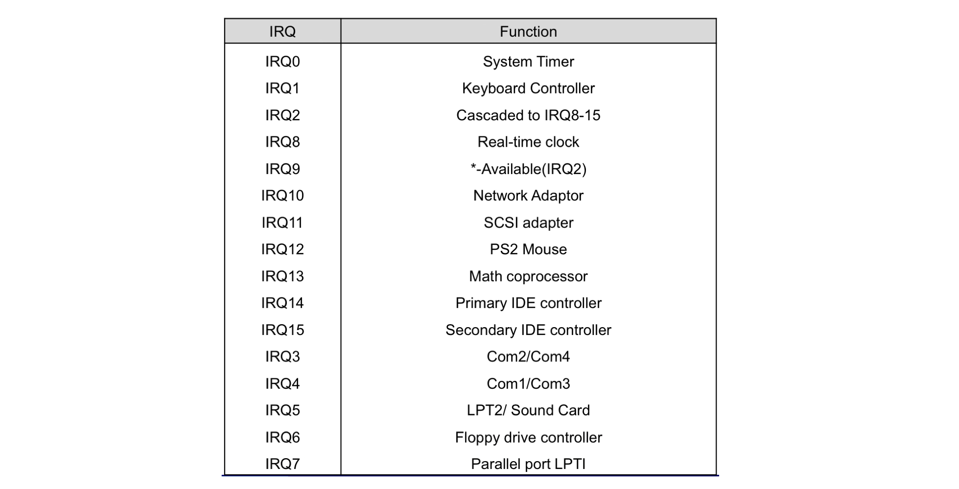 - 각 인터럽트 유형은 고유한 번호(IRQ 번호)와 연결된다