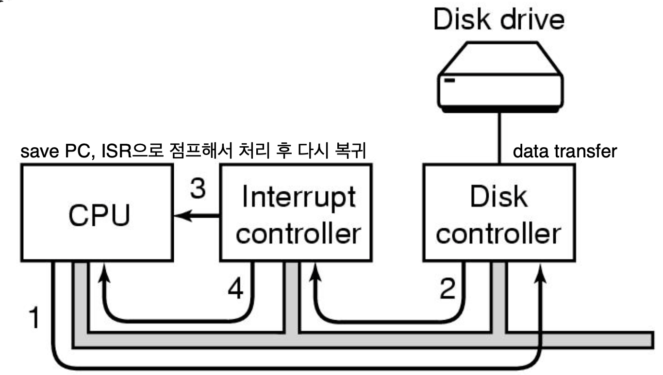 - 데이터 전송이 완료되면 I/O 장치가 인터럽트를 발생시킨다