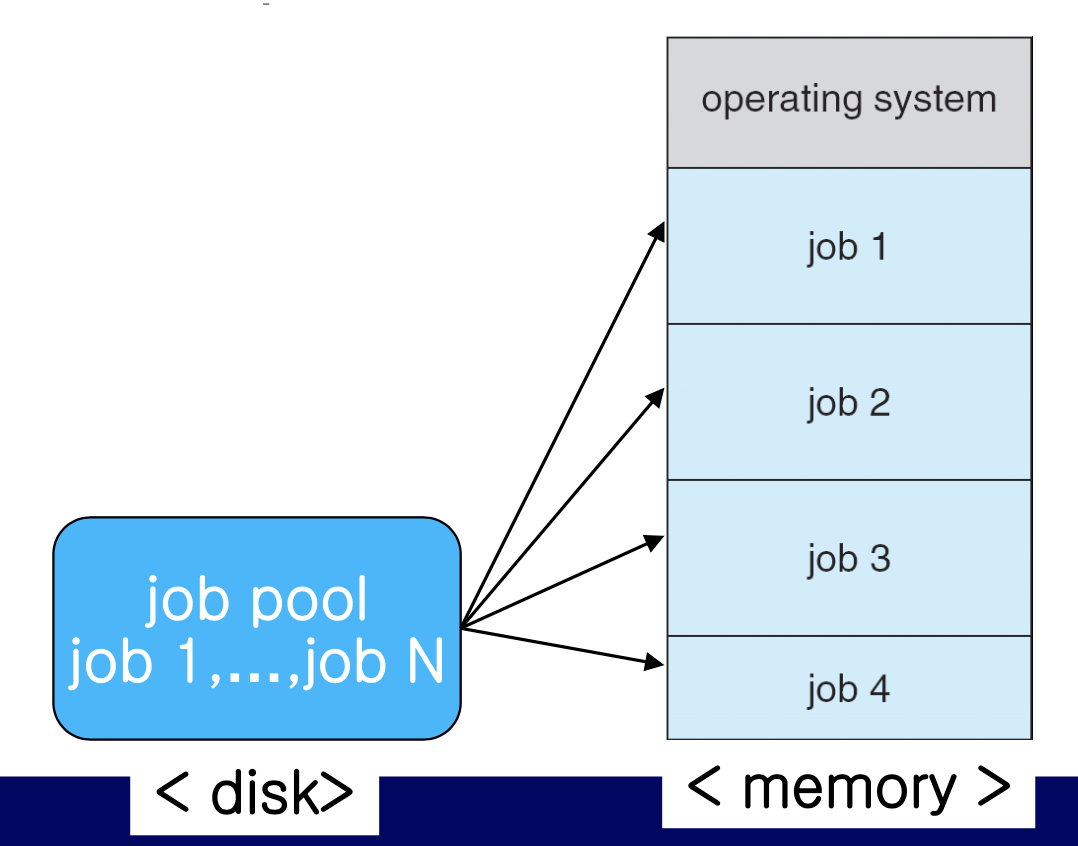 - 여러 작업(코드와 데이터)을 조직화하여 CPU가 항상 실행할 작업이 있도록 한다