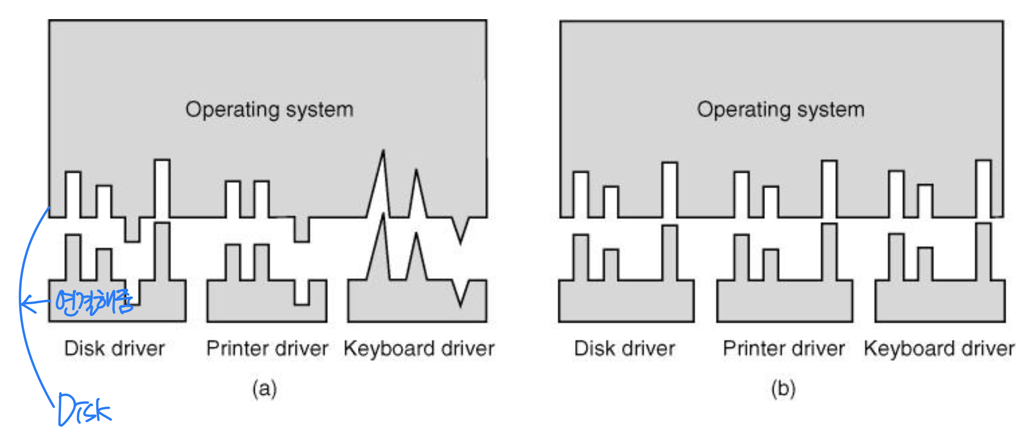 참고로 Device Driver는 소프트웨어이고, Device Controller는 하드웨어다. 디바이스 드라이버는 다양한 장치에 대해 균일한 인터페이스를 제공한다.