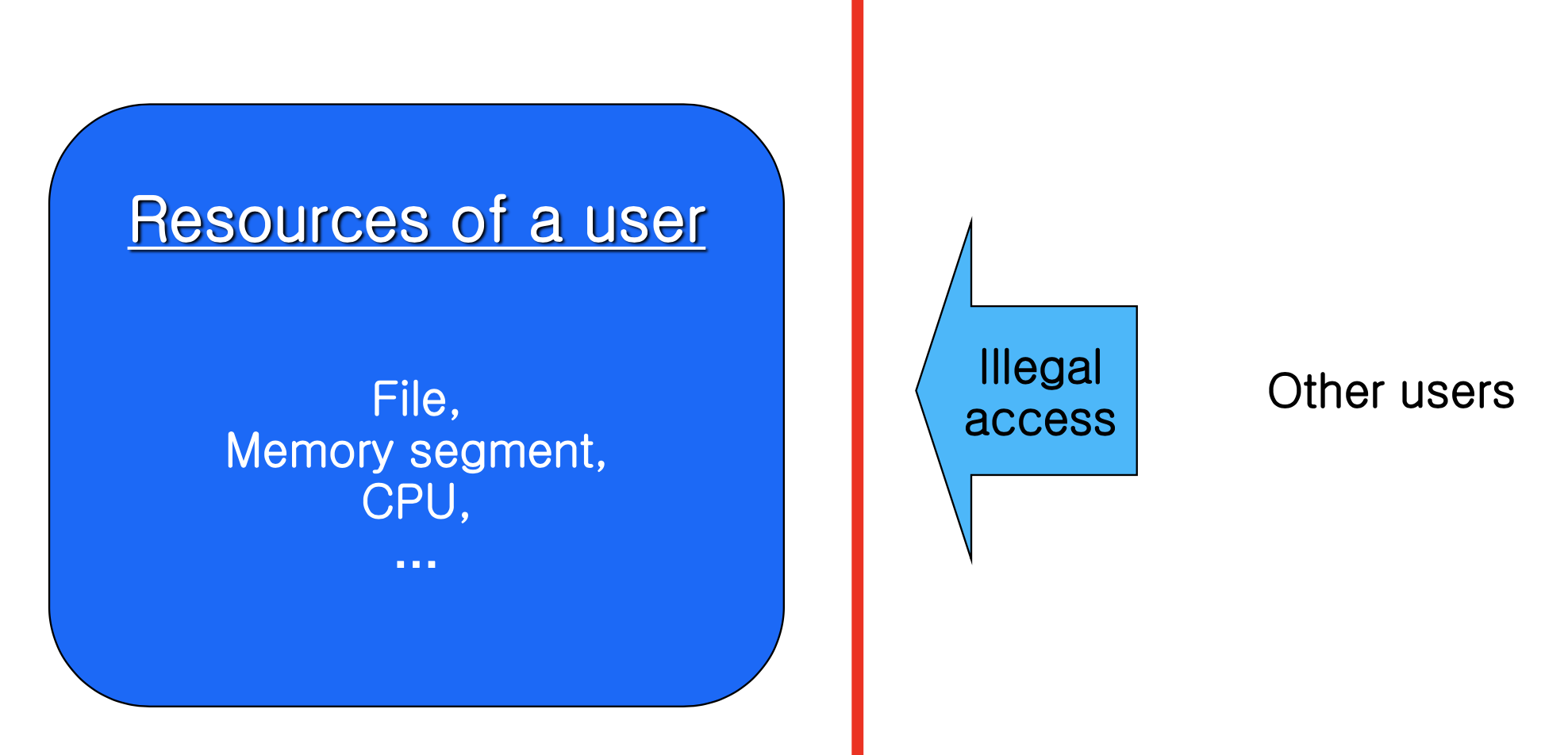 보호(Protection) 는 프로세스나 사용자의 자원 접근을 제어하는 모든 메커니즘을 의미한다. 모든 프로세스와 자원에 고유한 User ID, Group ID를 할당하여 ID가 다르면 접근을 차단하는 방식으로 동작한다.