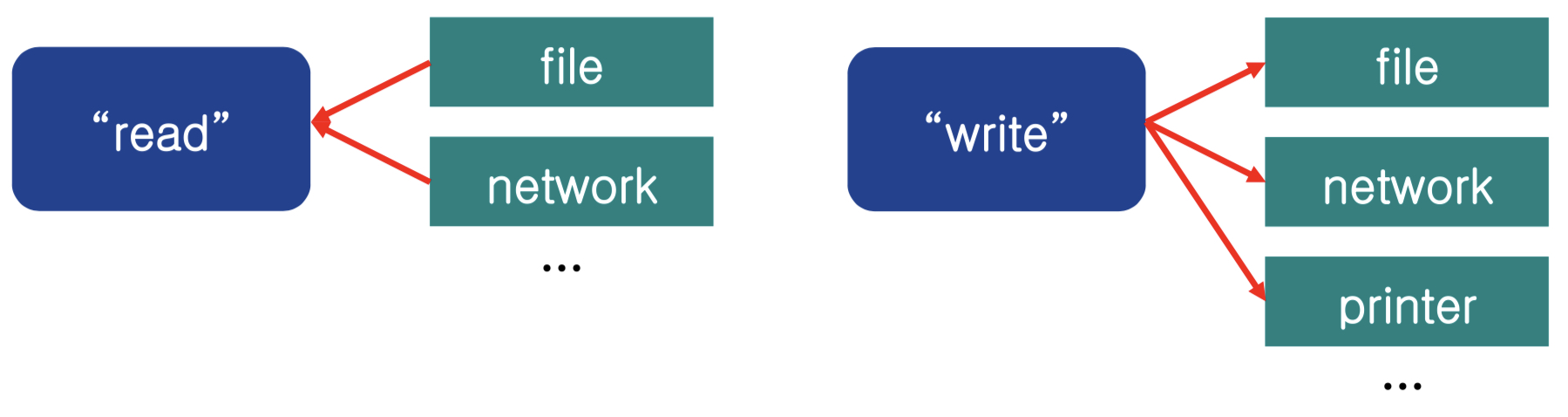 운영체제는 파일과 장치를 통합된 구조로 관리한다. I/O를 특수 파일에 매핑하여 파일과 장치 모두에 동일한 시스템 콜을 사용한다. 장치마다 다양한 버전이 필요한 부분은 디바이스 드라이버(Device Driver) 가 제공한다.