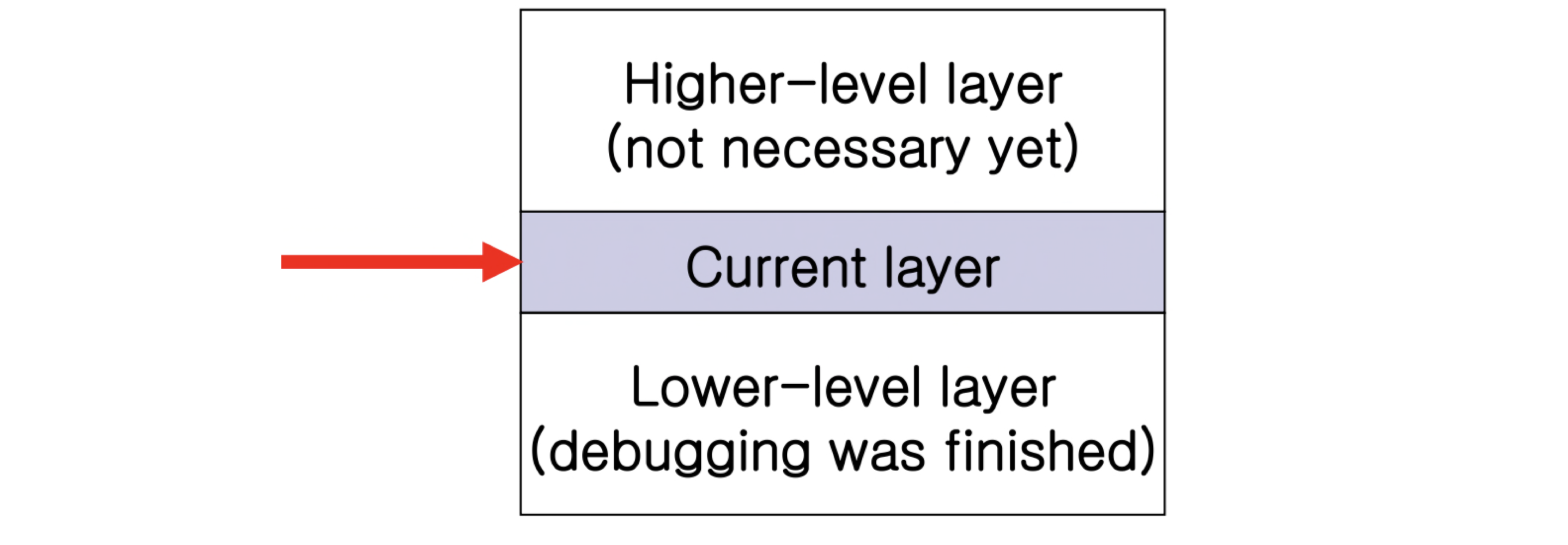 하위 계층부터 상위 계층으로 개발하면, 각 단계에서 현재 계층에만 집중할 수 있다. 하위 계층의 세부 구현을 알 필요가 없다.