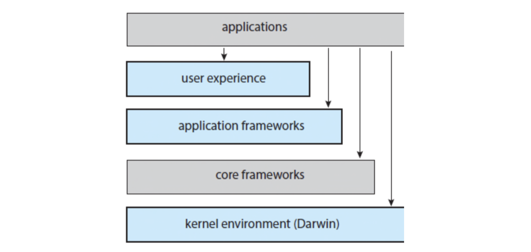 Apple 운영체제는 네 개의 계층으로 구성된다.