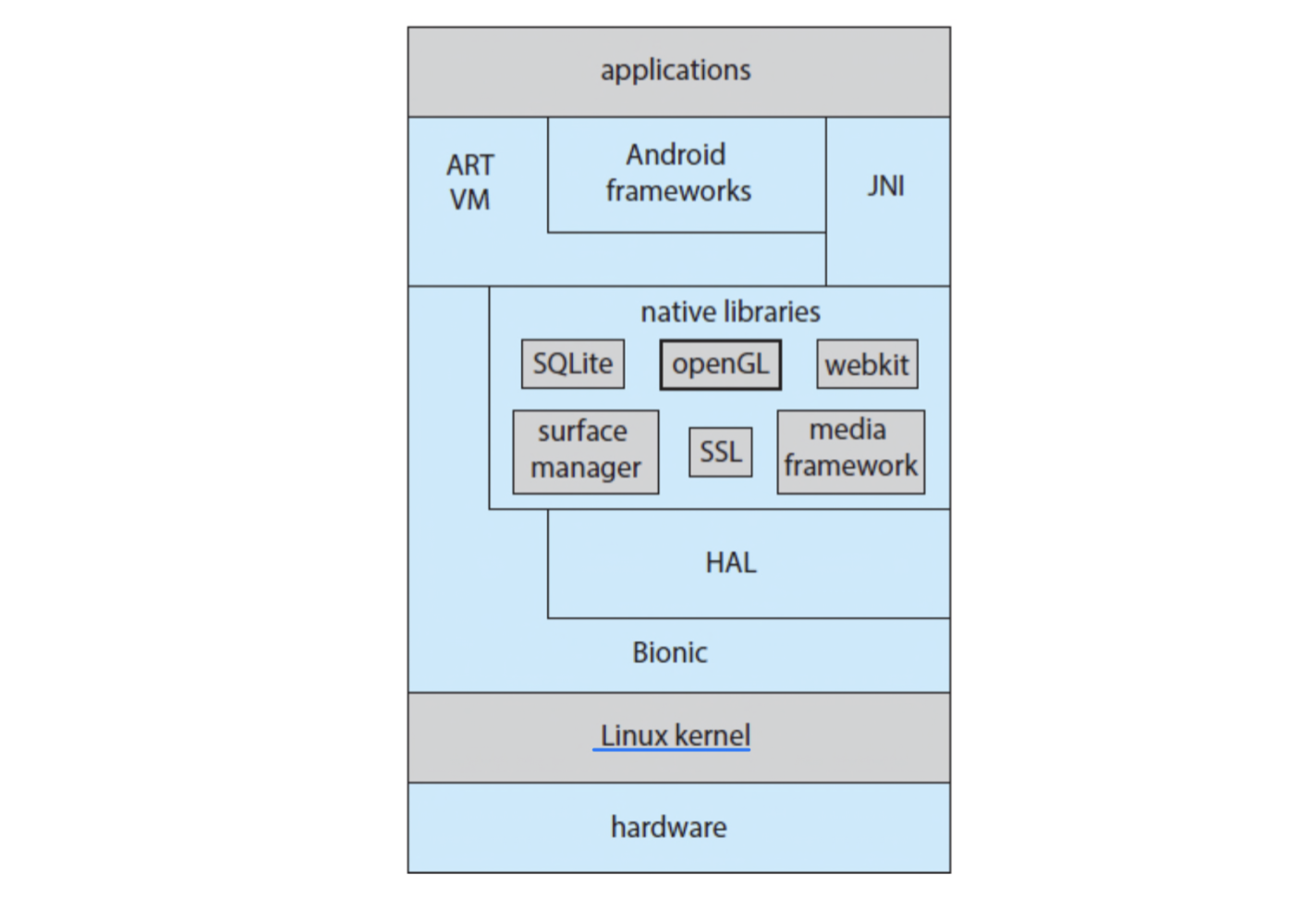 - Bionic: Android용 표준 C 라이브러리 (glibc의 Android 버전)