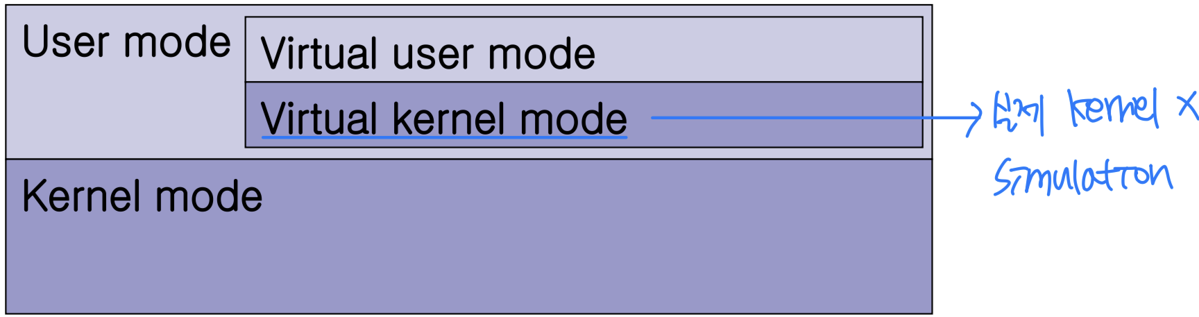 - 가상 사용자 모드 / 가상 커널 모드가 존재한다