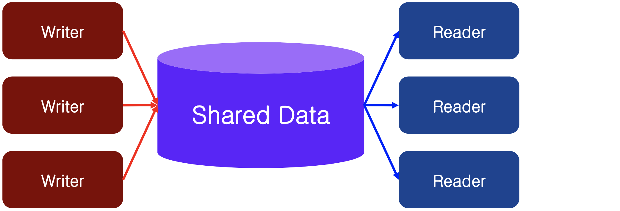 여러 Reader와 Writer가 하나의 공유 데이터에 접근하는 상황이다.