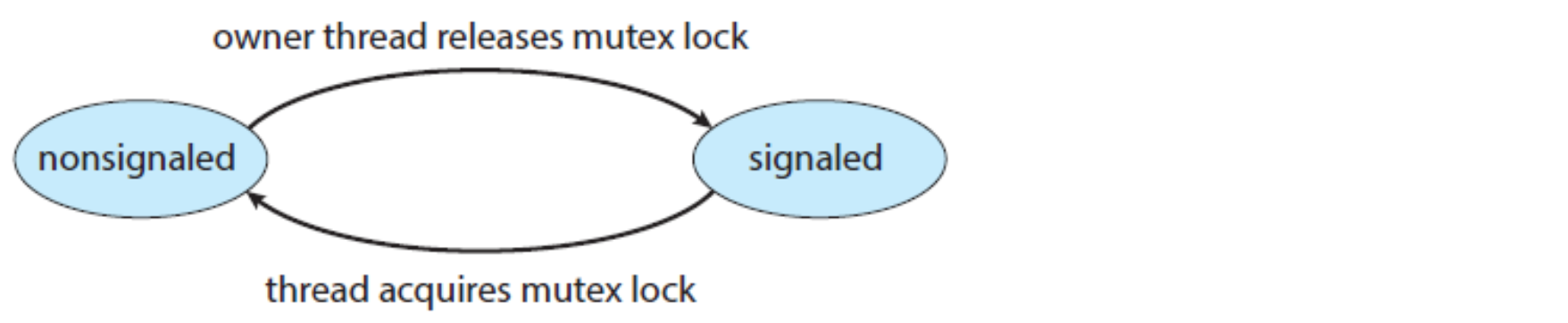 - Signaled 상태: 객체가 사용 가능 (mutex = 1, unlock). 스레드가 획득 시 블록되지 않는다.
