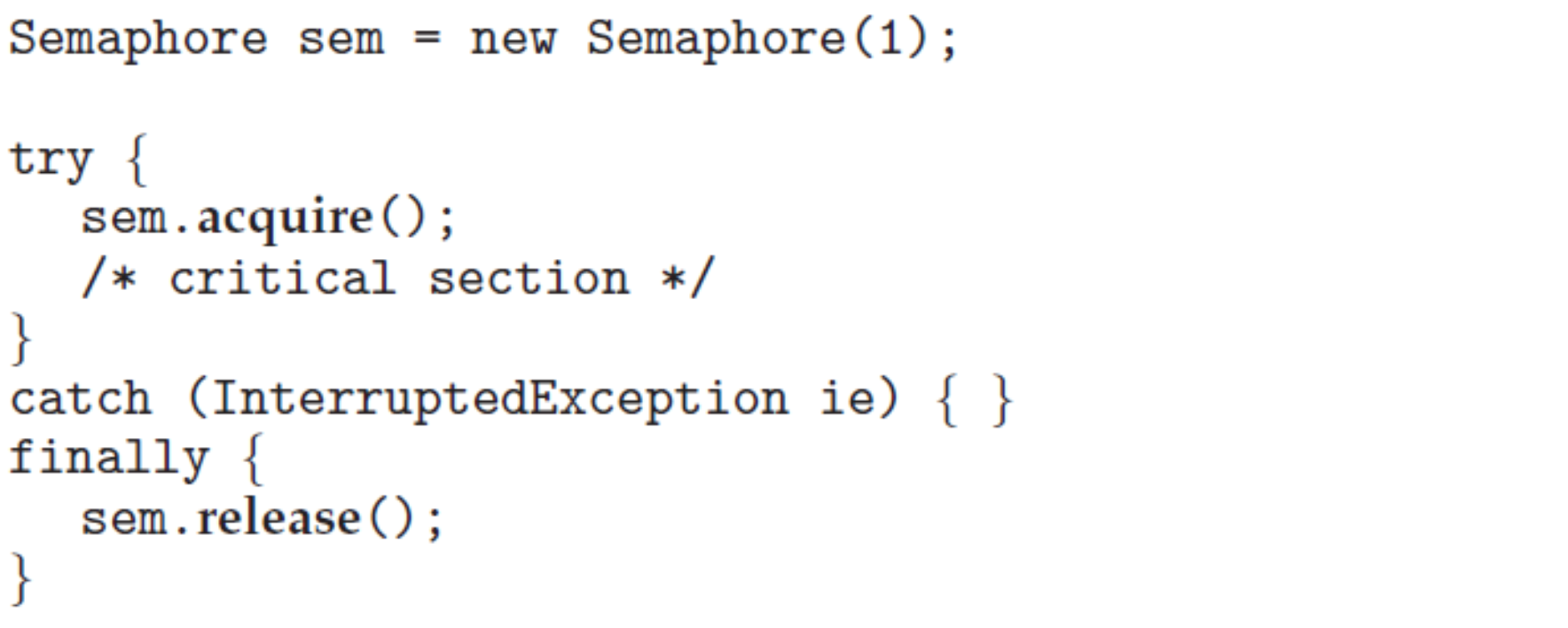 Semaphore sem = new Semaphore(1); // 초기값 1