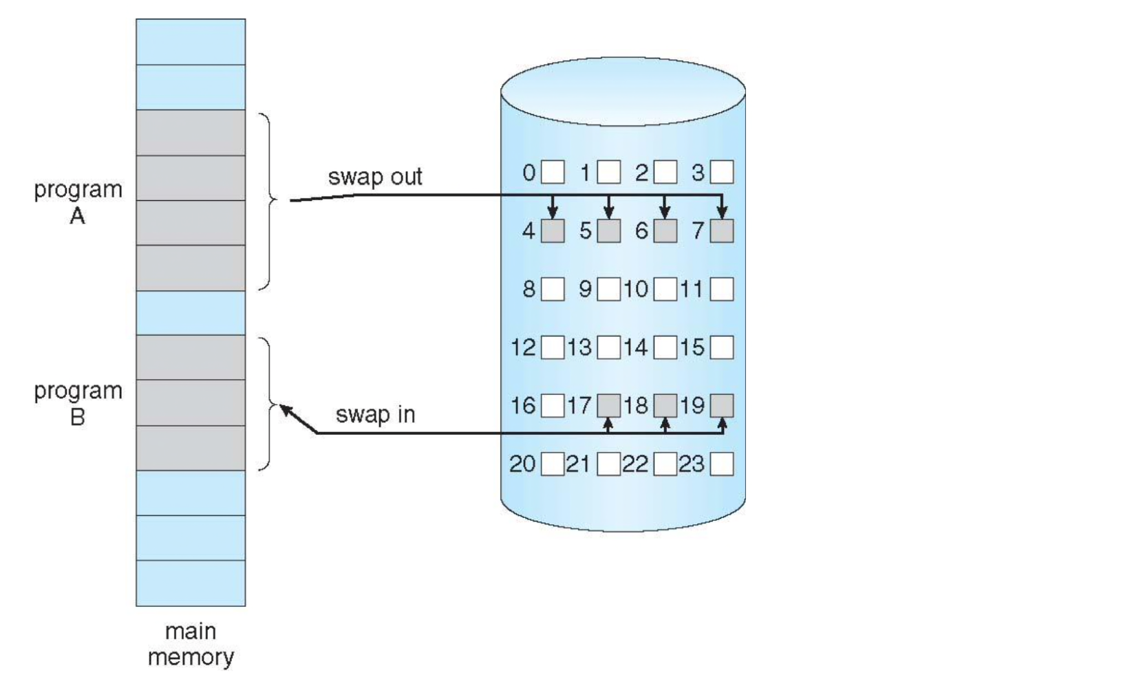 - 옵션 2 (권장): 처음에는 파일 시스템에서 요구 페이징으로 적재하고, 이후의 페이징은 스왑 공간에서 수행. 필요한 페이지만 파일 시스템에서 읽으므로 효율적이다