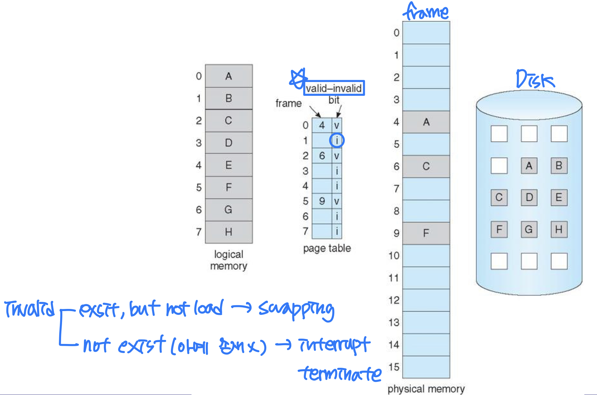 각 페이지에는 유효/무효 비트(Valid/Invalid Bit) 가 존재한다.