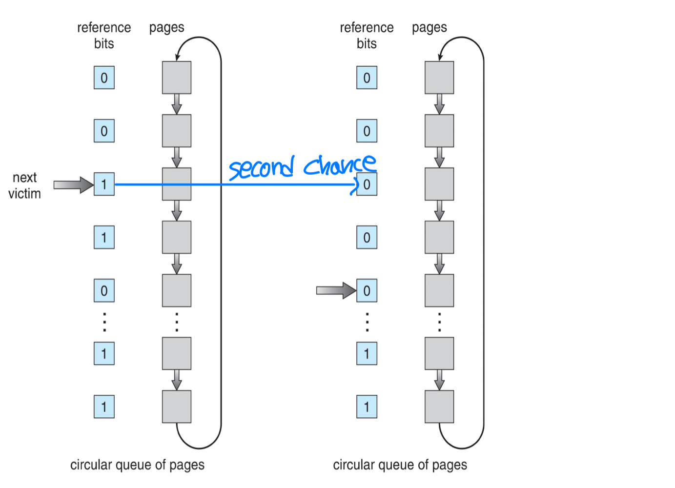 이때 수정 비트(Modify Bit, Dirty Bit) 를 활용하면 쓰기 오버헤드를 줄일 수 있다. 수정 비트가 0이면 해당 프레임은 변경되지 않았으므로 디스크에 다시 쓸 필요가 없다.