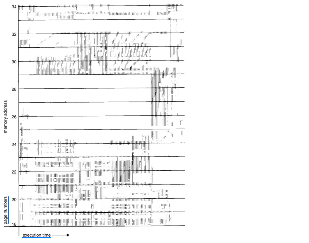 프로세스의 워킹셋과 페이지 폴트율은 직접적인 상관관계가 있다. 워킹셋은 시간에 따라 변하며, 페이지 폴트율도 시간에 따라 봉우리(peak)와 골짜기(valley)를 그린다.