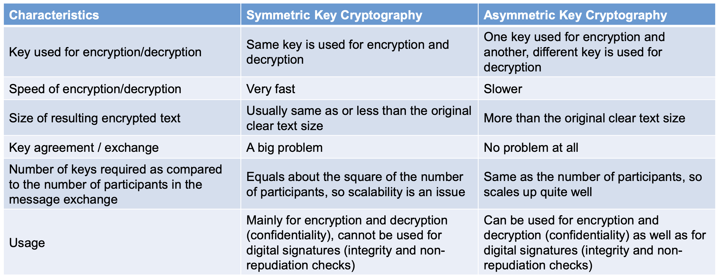 대칭키 암호화는 두 당사자 간에 비밀 키를 공유해야 한다. n명의 사용자가 서로 통신하려면 n(n-1)/2개의 키가 필요하다.