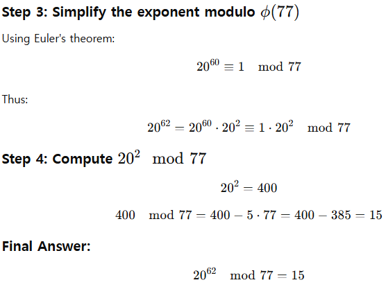 오일러 정리를 활용한 거듭제곱 계산 예제