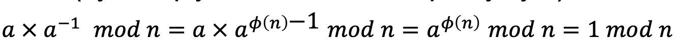 a⁻¹ mod n = a^(φ(n)−1) mod n