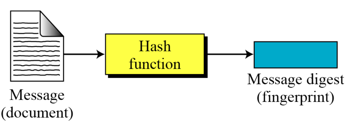 메시지의 무결성을 보존하기 위해 메시지를 **암호학적 해시 함수(Cryptographic Hash Function)**에 통과시킨다. 이 함수는 지문처럼 사용할 수 있는 메시지의 압축된 이미지를 생성한다.