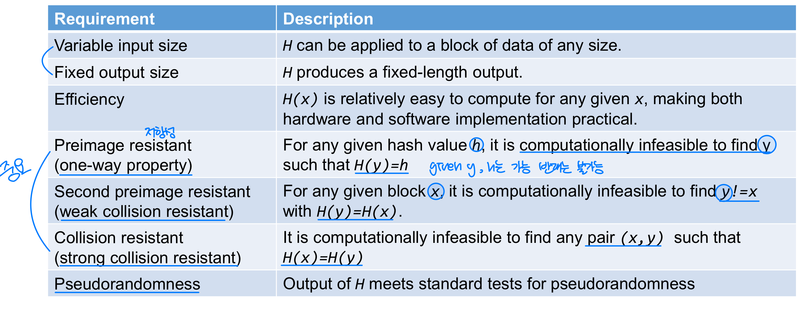 메시지 다이제스트의 요구사항