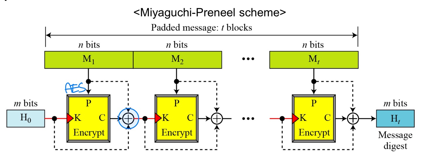 - MD5, SHA-1, RIPEMD-160, Whirlpool 등 어떤 해시 함수든 사용 가능