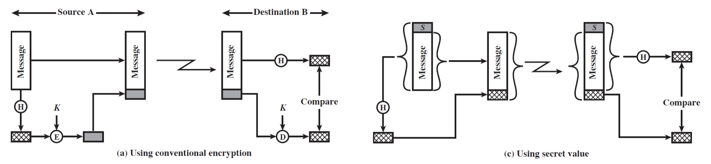 암호학적 해시 함수로 생성된 다이제스트는 보통 **MDC(Modification Detection Code)**라고 부른다. 메시지 인증에는 **MAC(Message Authentication Code)**이 필요하다.