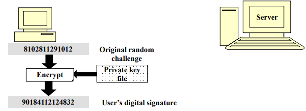 Step 1: 사용자의 컴퓨터가 개인키로 무작위 챌린지를 암호화하여 디지털 서명 생성