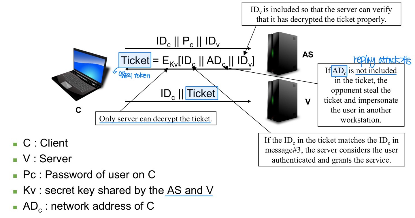 Ticket도 같은 문제가 있다. 따라서 네트워크 서비스는 티켓을 사용하는 사람이 티켓이 발급된 사람과 동일한지 증명할 수 있어야 한다.
