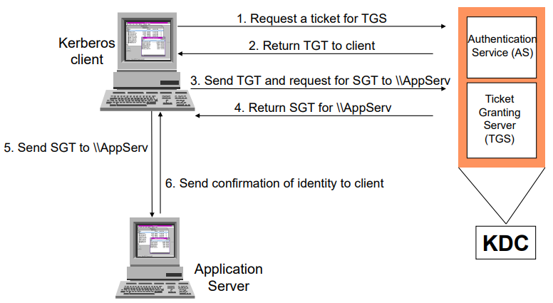 | TGS (Ticket Granting Server) | 일종의 KDC. TGT를 가진 클라이언트에게 특정 애플리케이션 서버용 SGT 발급 |