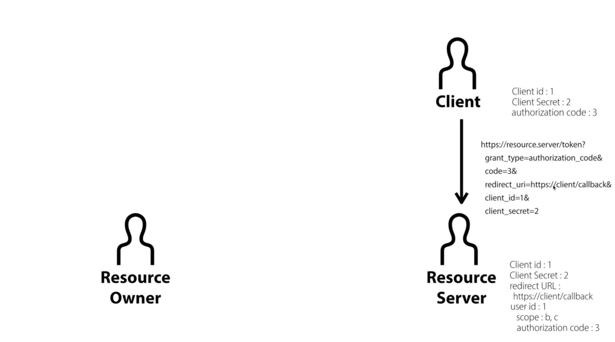 Client는 받은 Authorization Code를 사용하여 Resource Server에 Access Token을 요청한다.