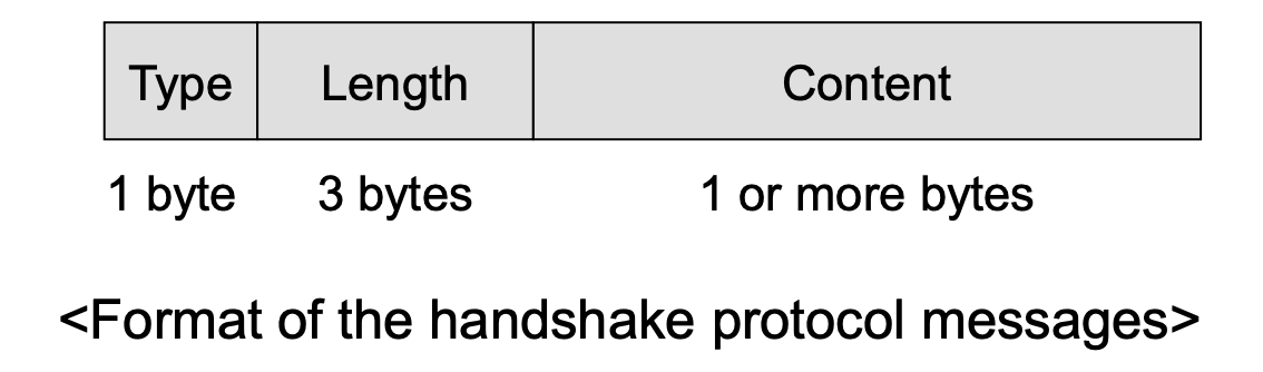 - Content type: handshake, alert, change cipher