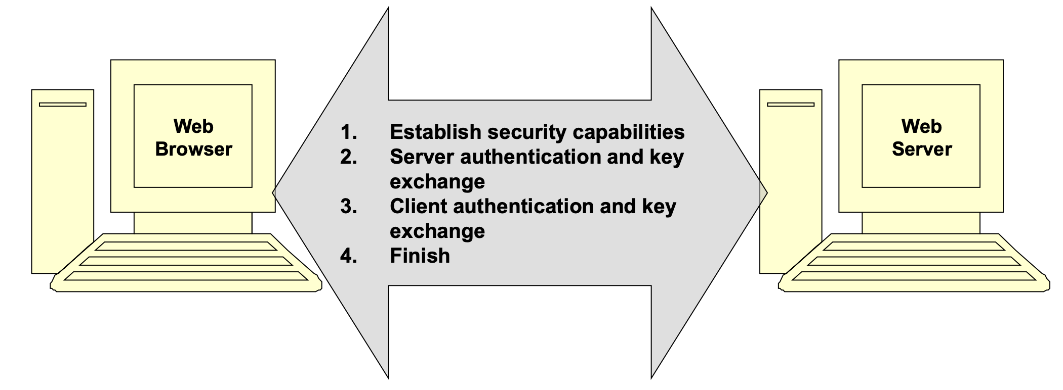 SSL은 양측이 ChangeCipherSpec 메시지를 송신하거나 수신하기 전까지는 이 파라미터나 비밀을 사용할 수 없다고 명시한다. 이 메시지는 Handshake Protocol 중에 교환되며 ChangeCipherSpec Protocol에서 정의된다.