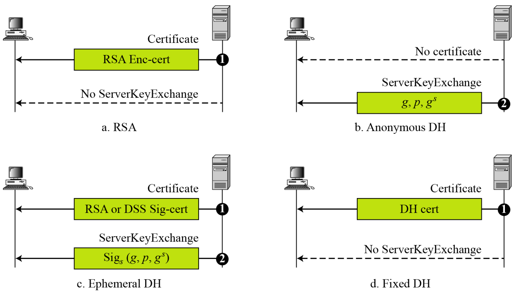 - RSA나 Fixed DH에서는 불필요