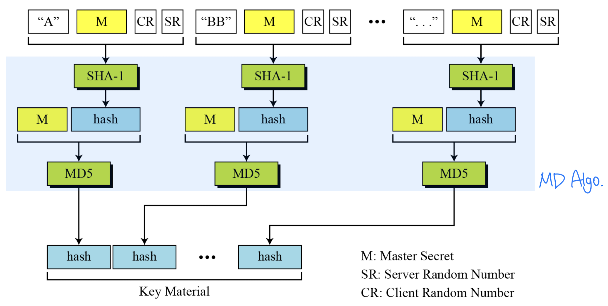 master secret에서 key material 계산: