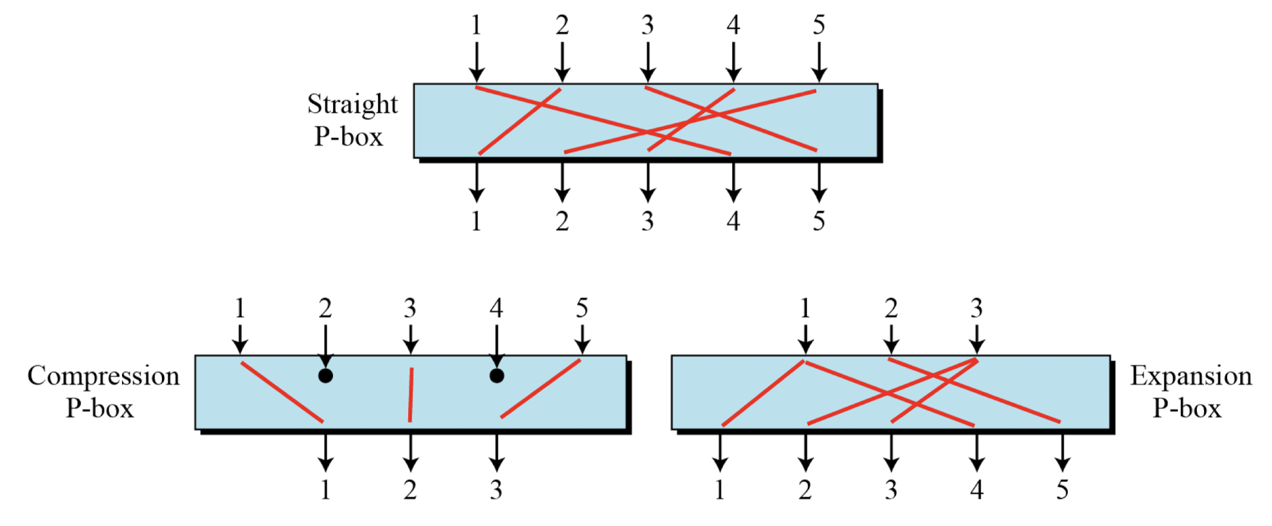 단, 일부 암호에서는 암호화에 compression이나 expansion P-Box를 사용하더라도 복호화에서 그 효과가 상쇄되도록 설계한다.