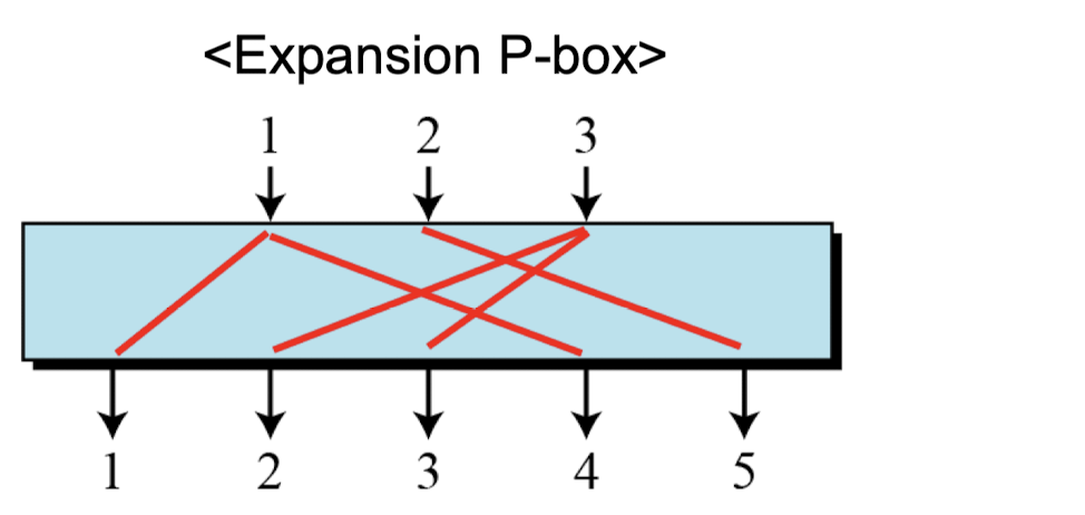 - Expansion P-Box: 하나의 입력이 여러 출력에 매핑될 수 있어, 복호화 시 어떤 입력이 어떤 출력에 매핑되었는지 알 수 없다.