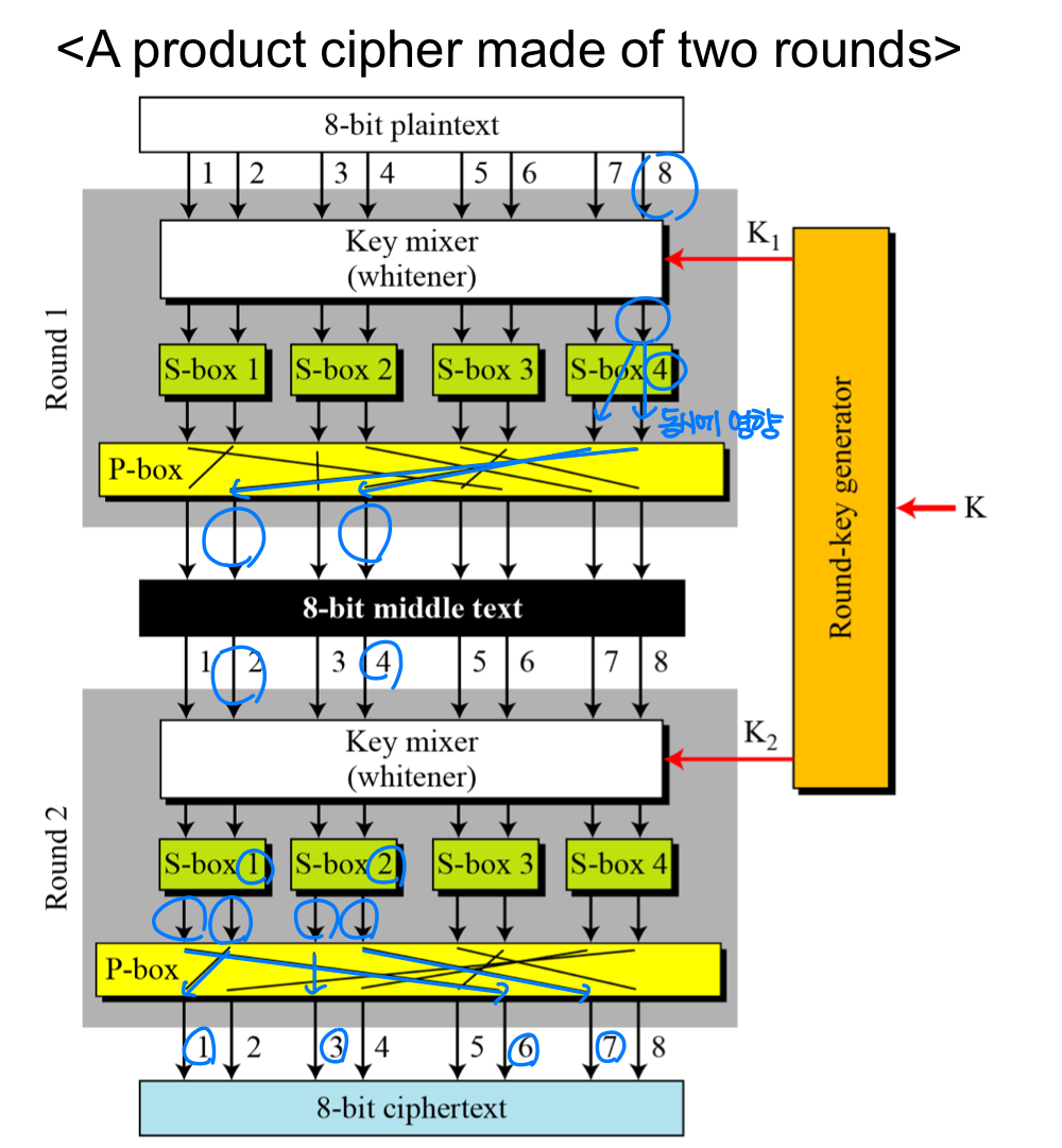 확산과 혼동은 S-Box, P-Box 등의 조합을 반복(iteration)하는 곱 암호로 달성된다.